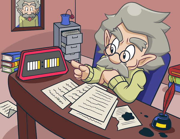 Als Albert auf seine Uhr schaut, leuchtet auf der Stundenanzeige das letzte Kästchen (bzw. das erste