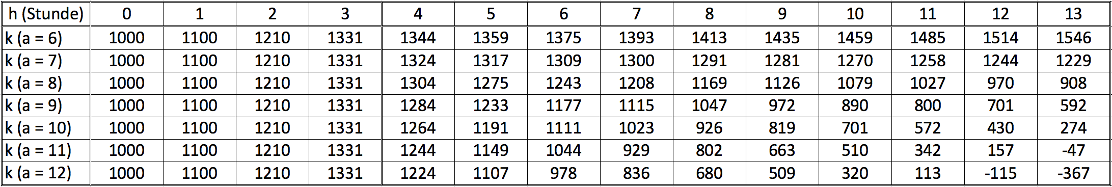 [Hinweis: Es handelt sich um eine einfache Abschätzung. Du kannst Kommazahlen beim Rechnen runden. Ebenso wird die Inkubationszeit vernachlässigt, alle sich ansteckenden Wichtel werden auch innerhalb derselben Stunde krank. Behandelte Wichtel werden sofort als gesund gezählt.]