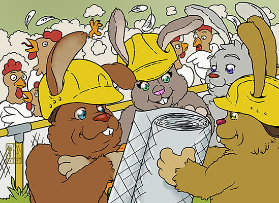 Auch in diesem Jahr haben wir uns zwei kleine Aufgaben für die Osterferien ausgedacht. Damit es auch in Zukunft glückliche Ostereier gibt, brauchen die Hühner mehr Platz. Deshalb müssen die Hasen das Gehege erweitern...
