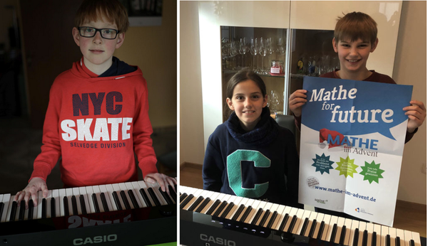 Kilian (Kl. 7) aus Nordrhein-Westfalen und Elias (Kl. 4), mit seiner Schwester Johanna, aus Rheinland-Pfalz durften sich über das Digitalpiano von CASIO freuen.