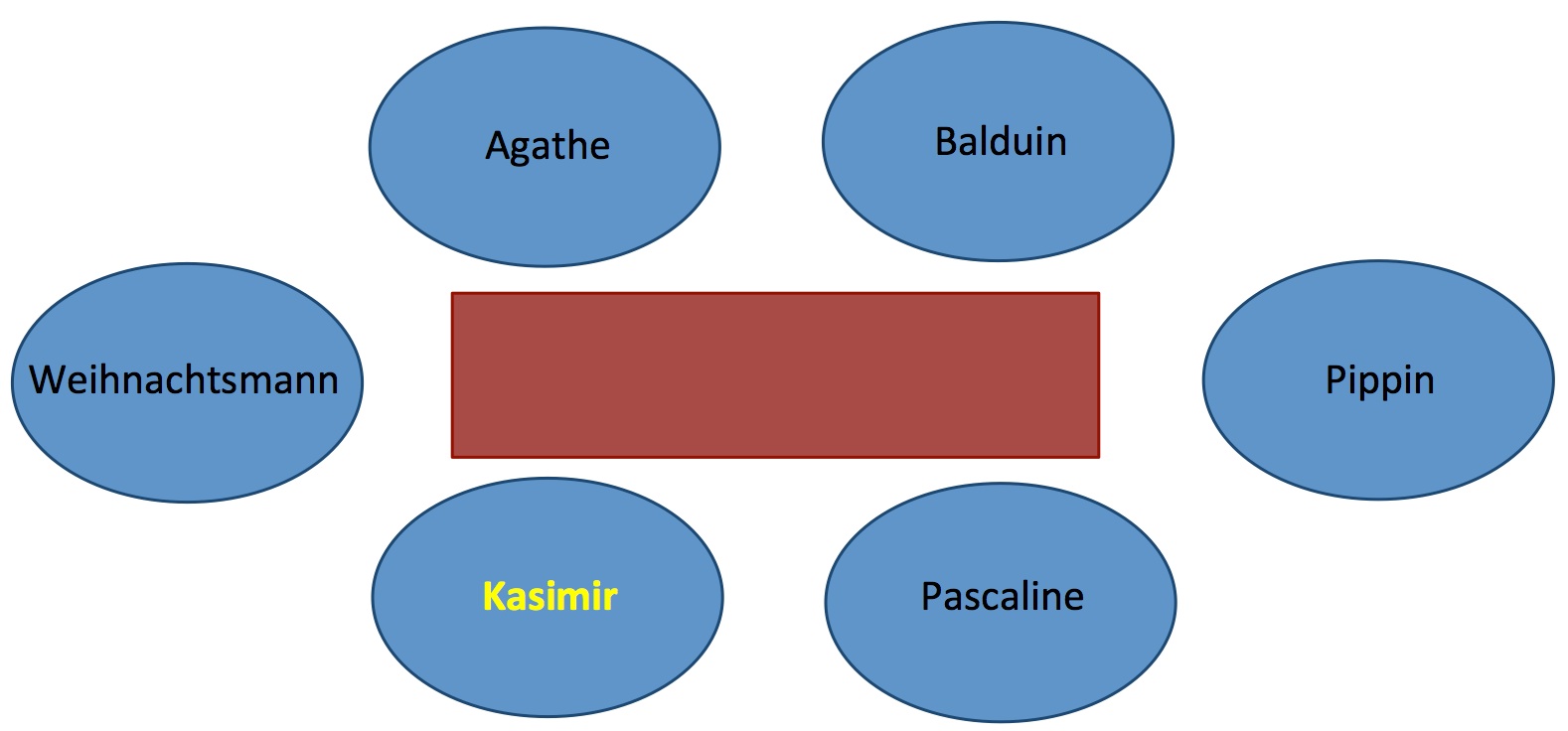 Aufgabe als PDF herunterladenJedes Jahr setzt sich der Weihnachtsmann mit den Wichteln Agathe, Pippin, Kasimir, Balduin und Pascaline zusammen, um die Route für das Verteilen der Geschenke zu planen. Agathe, die Assistentin des Weihnachtsmanns, ist für die Organisation dieses Treffens zustandig.